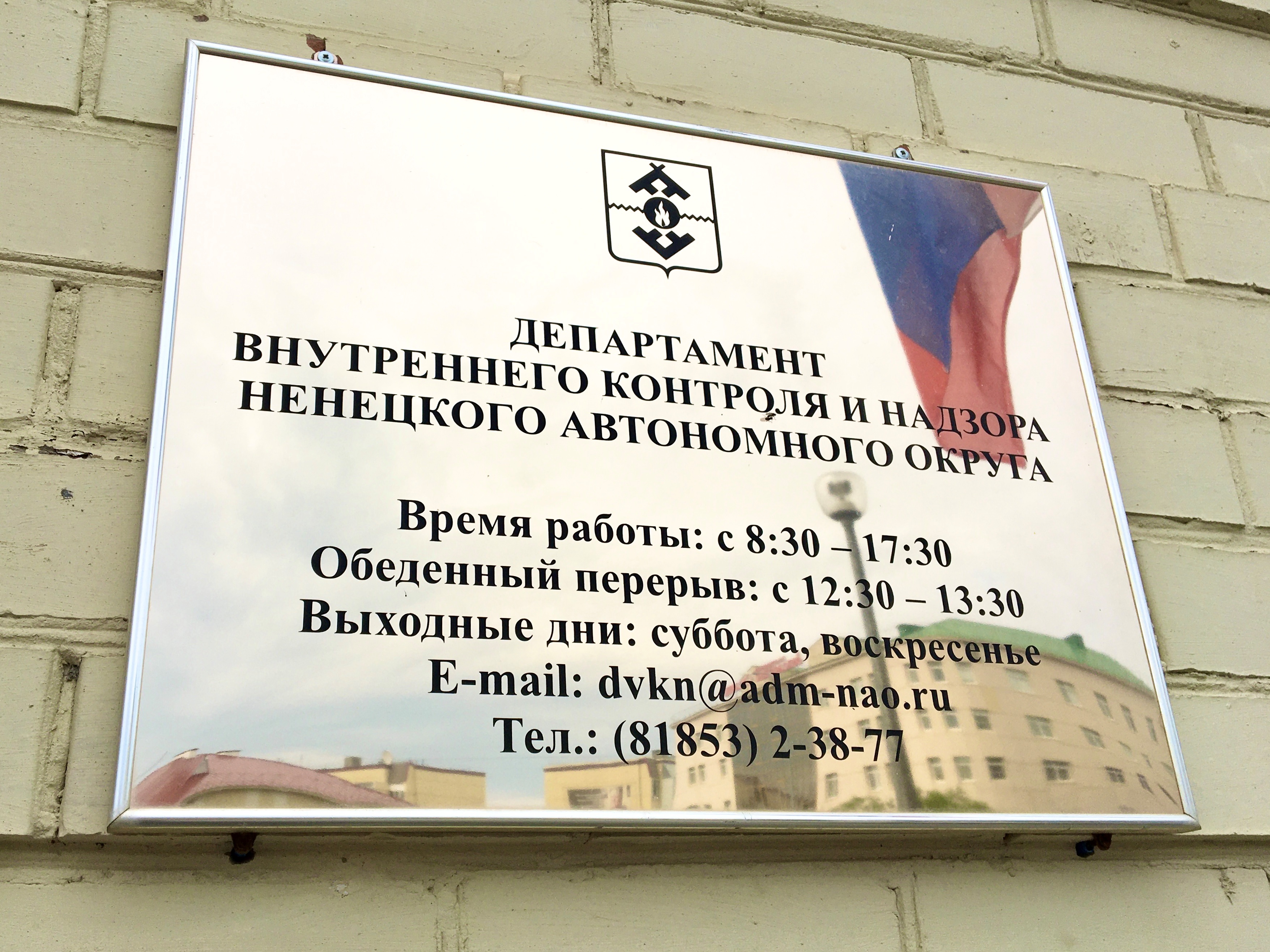 – лично по адресу г. Нарьян-Мар, ул. им. В.И. Ленина, д. 38, каб. 401, время приёма в рабочие дни с 8.30 до 17.30, перерыв с 12.30 до 13.30, контактный телефон 8(81853)2-38-77.